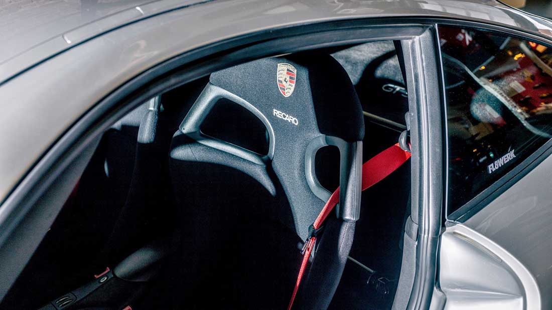 En 1999, el GT3 marca la diferencia respecto a las versiones del 996 más “de calle” con un aumento considerable de la potencia, 60 HP (44 kW) más para llegar a los 360 HP (265 kW), unido a unos retoques selectivos en el chasis y la carrocería, y a la renuncia a algunas funciones de confort para contener el peso. El motor atmosférico refrigerado por agua sigue siendo en la actualidad una característica distintiva de todas las generaciones del GT3, al igual que el alerón trasero desplegable, que inicialmente era fijo. “Cada milímetro del coche está pensado para obtener el máximo rendimiento”, anunciaba Porsche en su día en un catálogo de su versión más deportiva del 911. “En el GT3, la forma sigue a la función, y a la función le sigue el disfrute al volante, una experiencia de conducción heredada directamente de la competición”. También Timo Conrad, de FL8WERK, está muy ligado a las carreras. “Al principio conduje karts y luego participé en distintas categorías de monoplazas, incluso en carreras de montaña”, relata, “pero llegó un momento en que me pregunté seriamente si de verdad era viable triunfar como piloto”. Entonces decidió trabajar en la empresa de sus padres.