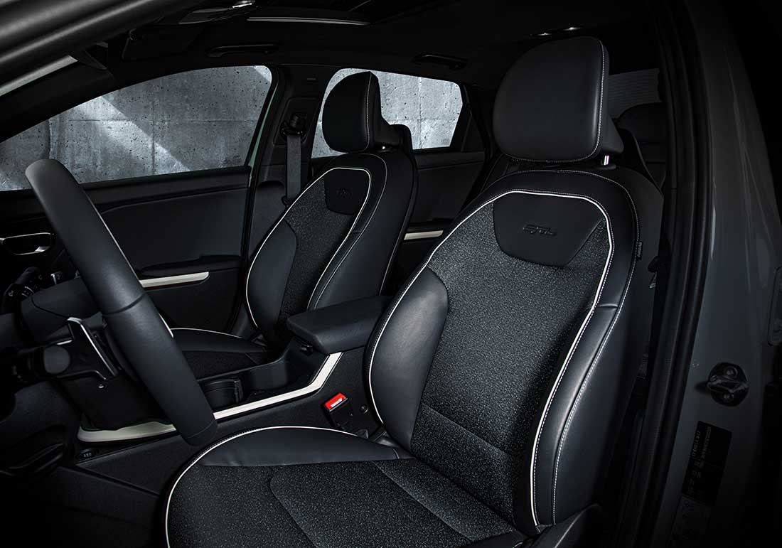 Las versiones L, LX y EX cuentan con vestiduras en tela, mientras que para GT-Line 2.0L son en piel bitono, y para GT-Line Turbo se ofrece una combinación de tela y piel con costuras en color blanco. El cómodo interior se corona con luces ambientales directas e indirectas para crear un espacio inspirador; finalmente, de acuerdo con la versión, incorpora volante de dos o tres brazos.